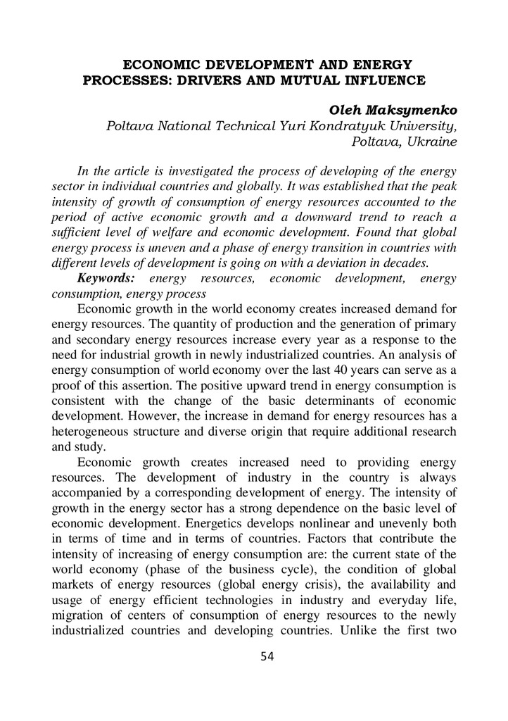Economic development and energy processes: drivers and mutual influence
