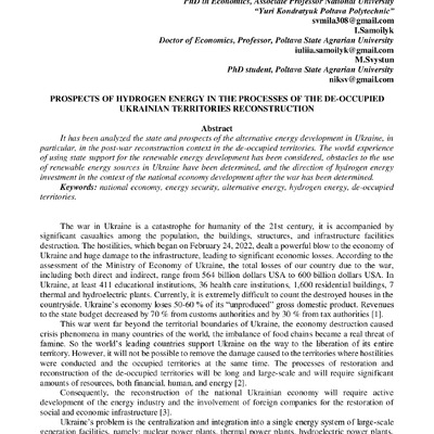 Prospects of hydrogen energy in the processes of the de-occupied Ukrainian territories reconstruction