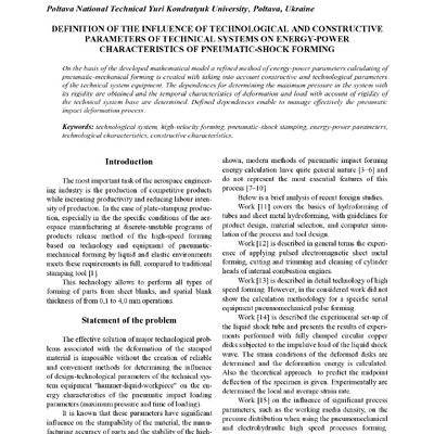 Definition of the influence technological and constructive parameters of technical systems on energy-pover characteristics of pneumatic-shock forming