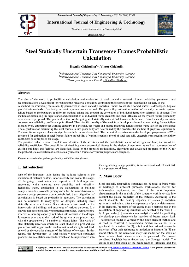 The aim of the work is probabilistic calculation and evaluation of steel statically uncertain frames reliability parameters and recommendations development for reducing their material content by co...