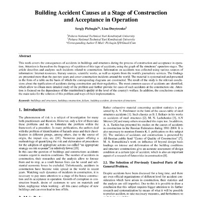 Стаття 2018/11/08Building Accident Causes at a Stage of Construction and Acceptance in Operation