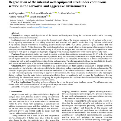 Degradation of the internal well equipment steel under continuous service in the corrosive and aggressive environments