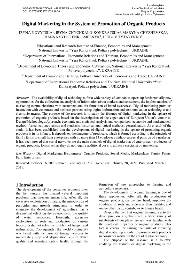 Digital marketing in the system of promotion of organic products