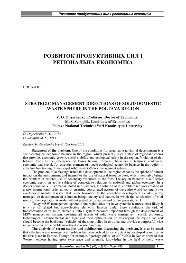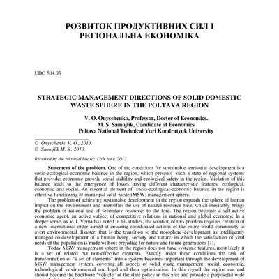 Strategic management directions of the sphere of solid domestic waste of Poltava region