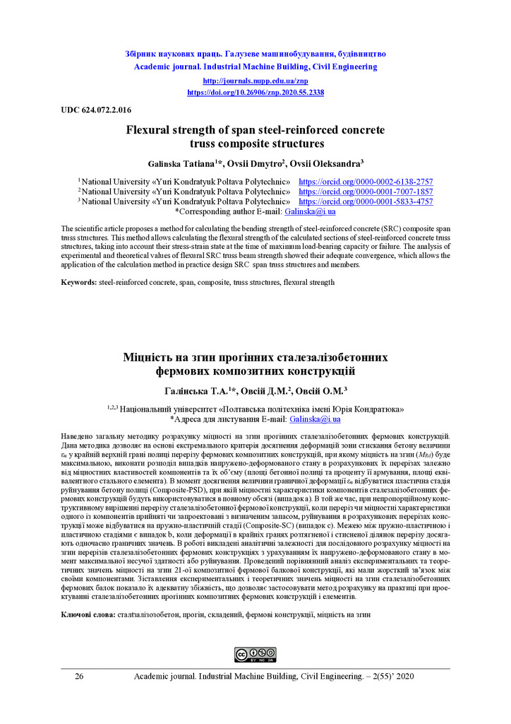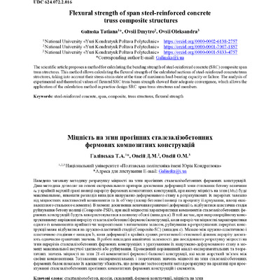 Стаття 2024/04/16Flexural strength of span steel-reinforced concrete truss composite structures