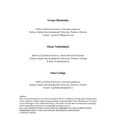 В статті запропоновано використання методу підйому перекриттів для зведення вбудованих систем під час реконструкції житлових та громадських будівель в умовах щільної міської забудови. Розглянуто пе...