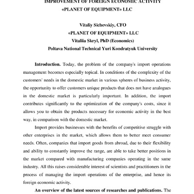 Стаття 2021/06/02Improvement of foreign economic activity of «Planet of equipment» LLC