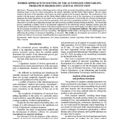 Стаття 2021/01/11Hybrid approach to solving of the automated timetabling problem in higher educational institution