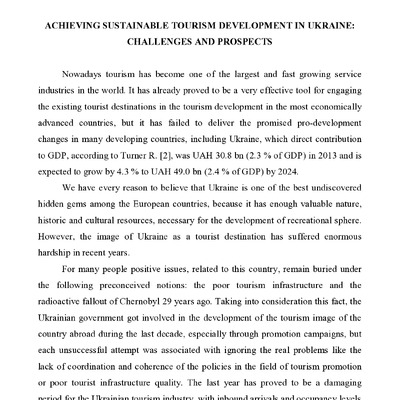 Economic and political instability, as well as the lack of policy and planning are the key problems in the tourism development in Ukraine. That is why national tourism developers should make every ...