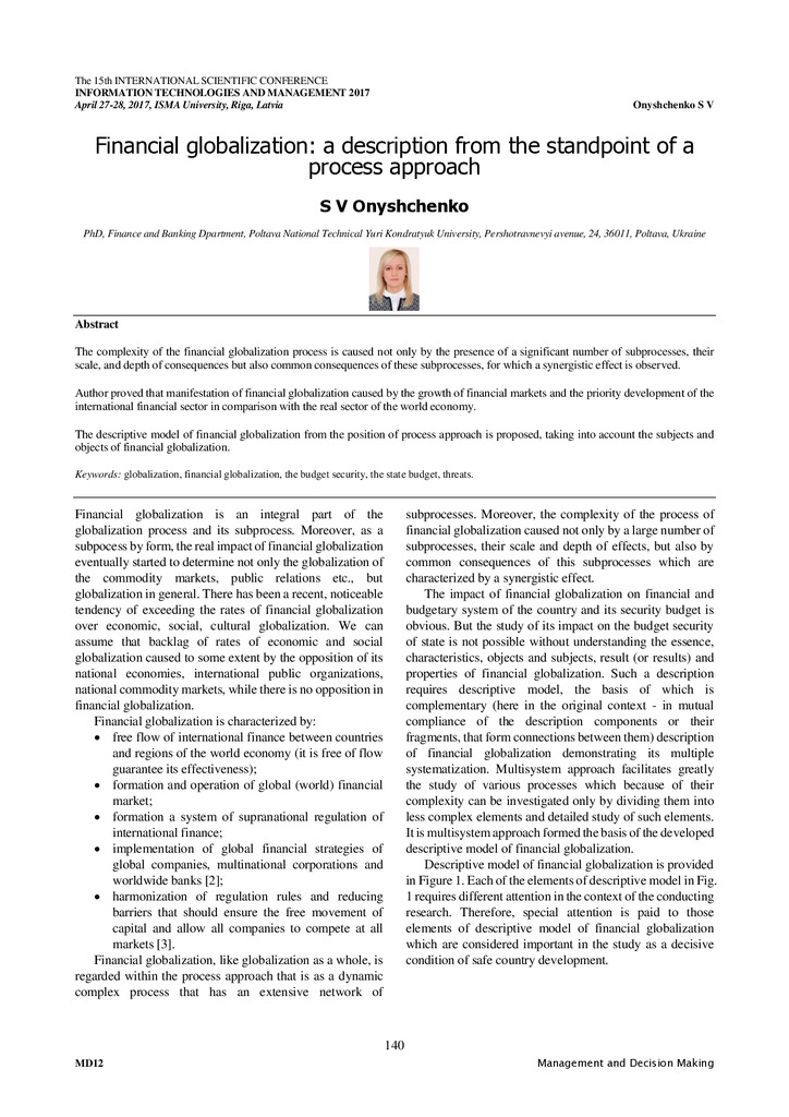 The complexity of the financial globalization process is caused not only by the presence of a significant number of subprocesses, their scale, and depth of consequences but also common consequences...