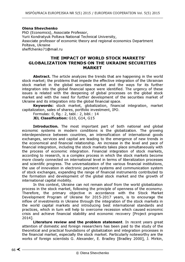 2021/12/26The impact of world stock markets’ globalization trends on the Ukraine securities market