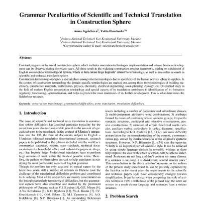 Grammar Peculiarities of Scientific and Technical Translation in Construction Sphere