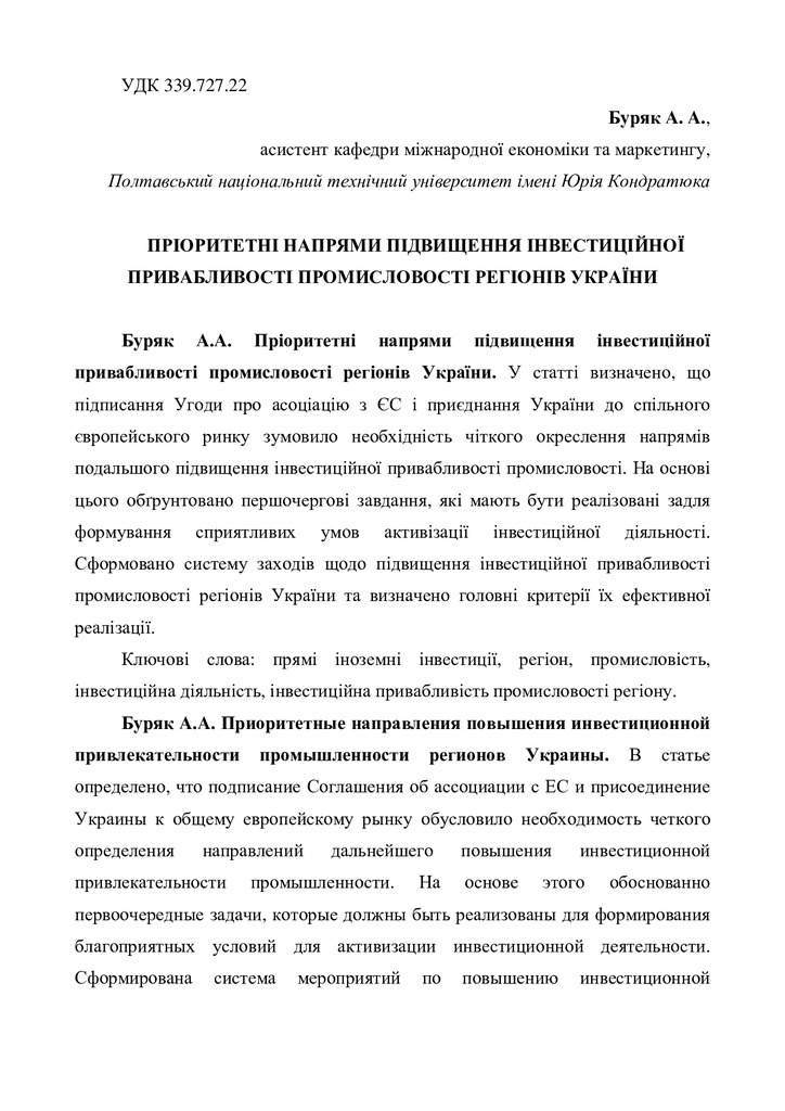 Пріоритетні напрями підвищення інвестиційної привабливості промисловості регіонів України