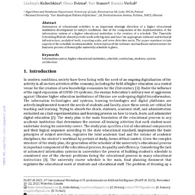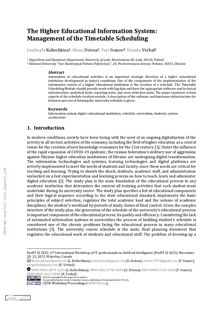 Стаття 2024/02/23The higher educational information system: management of the timetable scheduling and logistics of the educational process