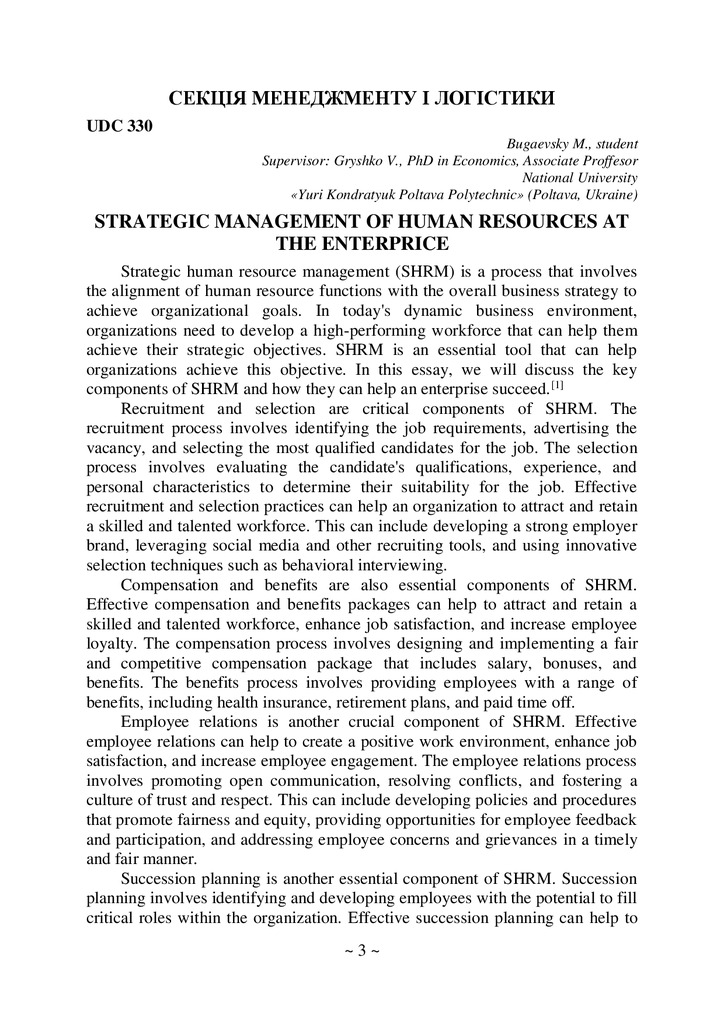 Strategic management of human resources at the enterprice