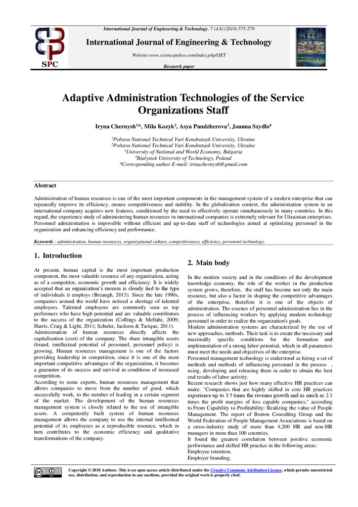 Administration of human resources is one of the most important components in the management system of a modern enterprise that can repeatedly improve its efficiency, ensure competitiveness and stab...