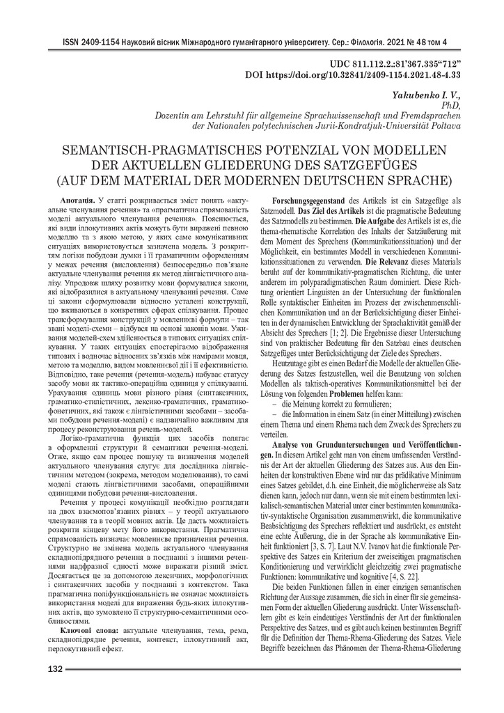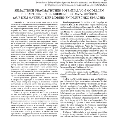 Forschungsgegenstand des Artikels ist ein Satzgefüge als Satzmodell. Das Ziel des Artikels ist die pragmatische Bedeutung des Satzmodells zu bestimmen. Die Aufgabe des Artikels ist es, die thema-r...