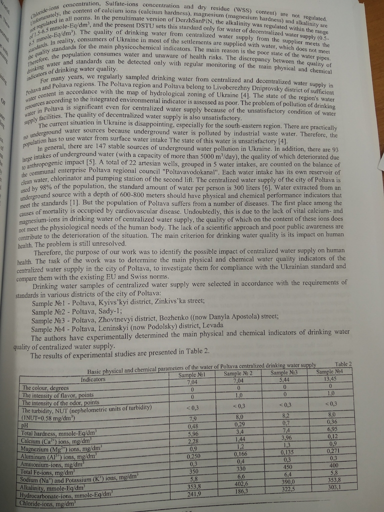 2025/06/12Analysys of Poltava drinking water quality in the context of standards of Ukraine and EU