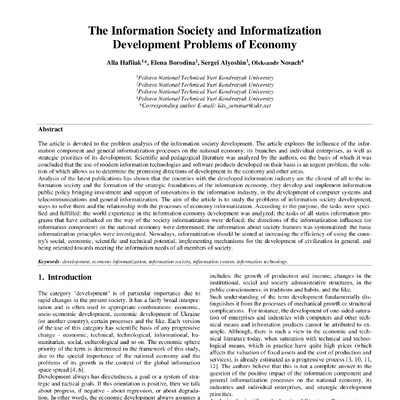Стаття 2020/02/16The Information Society and Informatization Development Problems of Economy