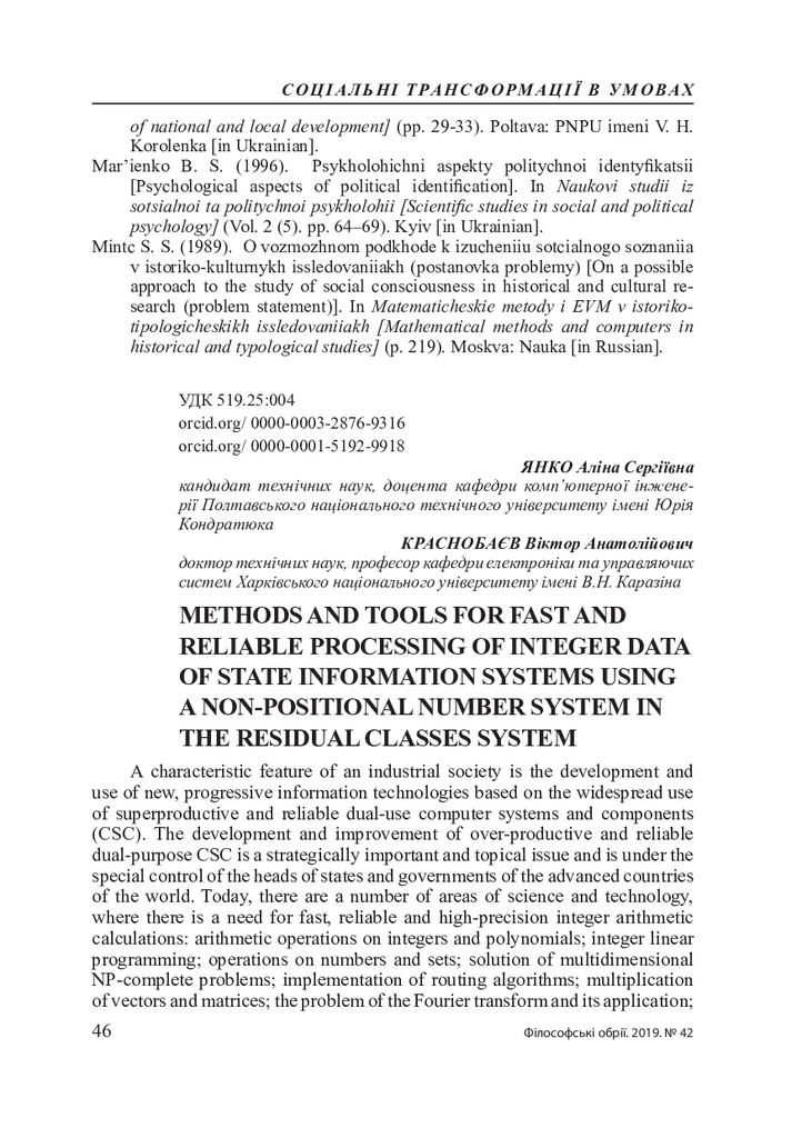 Methods and tools for fast and reliable processing of integer data of state information systems using a non-positional number system in the residual classes system