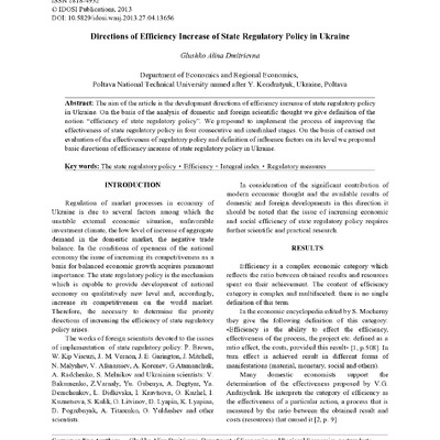 Directions of Efficiency Increase of State Regulatory Policy in Ukraine