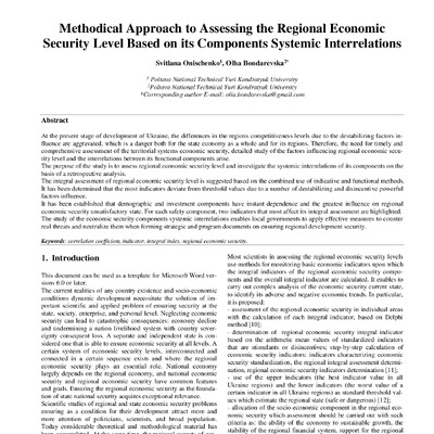 Methodical approach to assessing the regional economic security level based on its components systemic interrelations