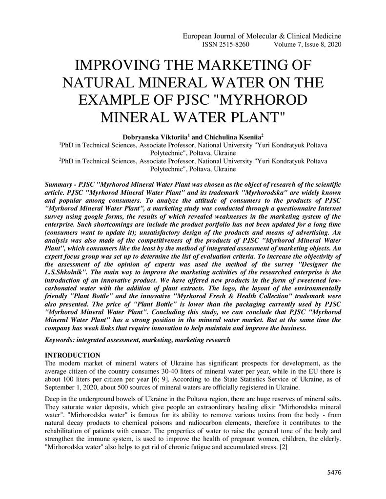 Improving the marketing of natural mineral water on the example of PJSC «Myrhorod Mineral Water Plant»