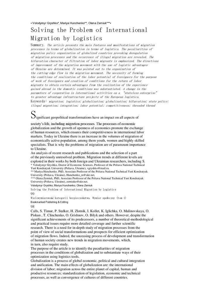 Стаття 2018/12/14Solving the Problem of International Migration by Logistics