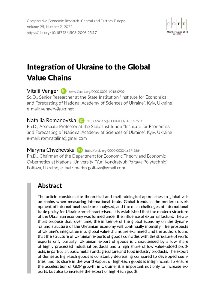 Стаття 2025/12/10Integration of Ukraine to the Global Value Chains