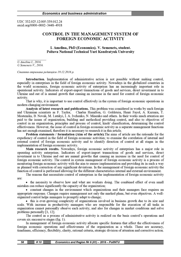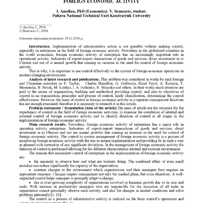 The Control in the Management System of Foreign Economic Activity