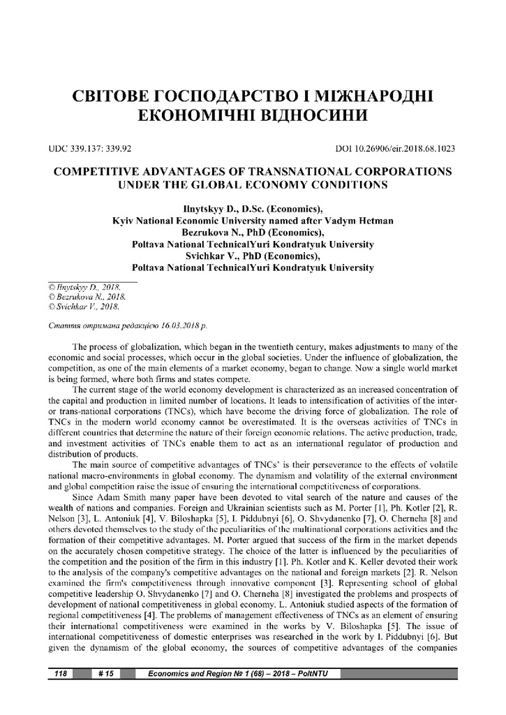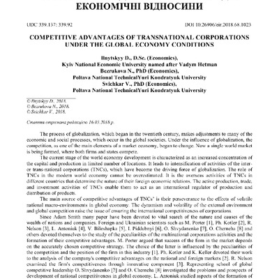 Competitive Advantages of Transnational Corporations under the Global Economy Conditions