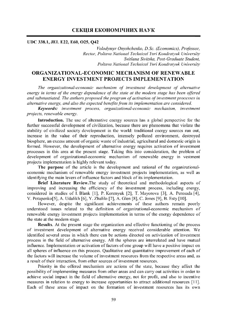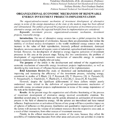 The organizational-economic mechanism of investment development of alternative energy in terms of...