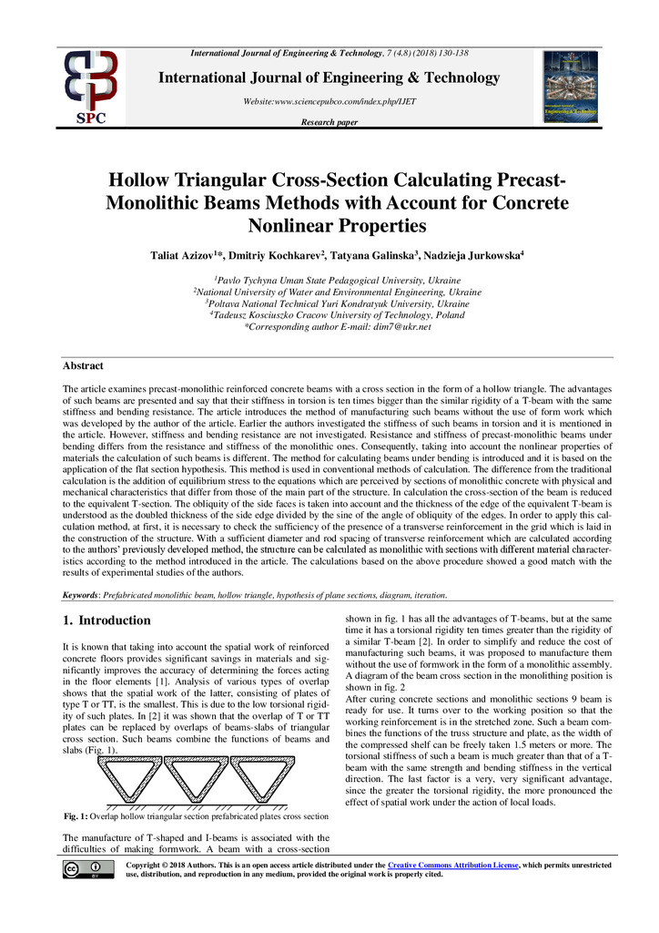 Стаття 2023/06/29Hollow triangular cross-section calculating precastmonolithic beams methods with account for concrete nonlinear properties
