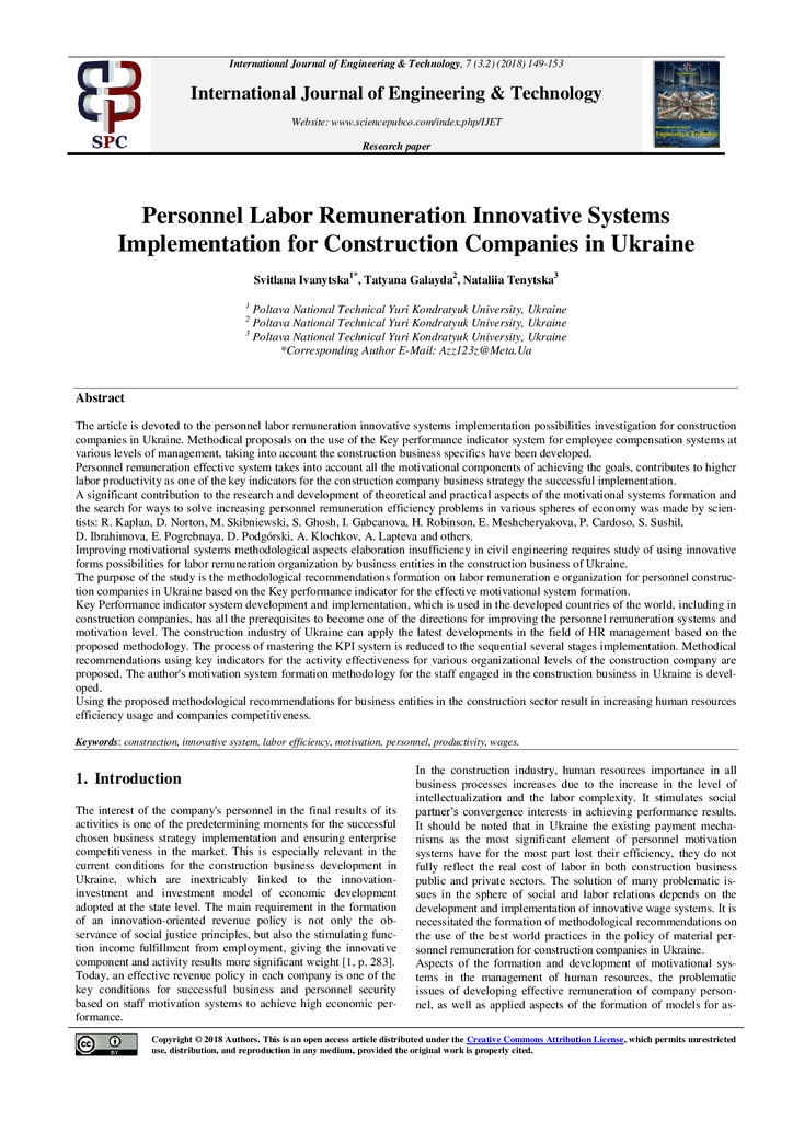 Personnel Labor Remuneration Innovative Systems Implementation for Construction Companies in Ukraine