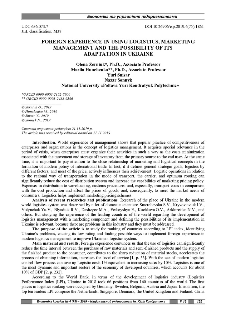 Foreign experience in using logistics, marketing management and the possibility of its adaptation in Ukraine