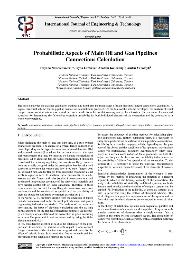 The article analyzes the existing calculation methods and highlights the main stages of main pipe...
