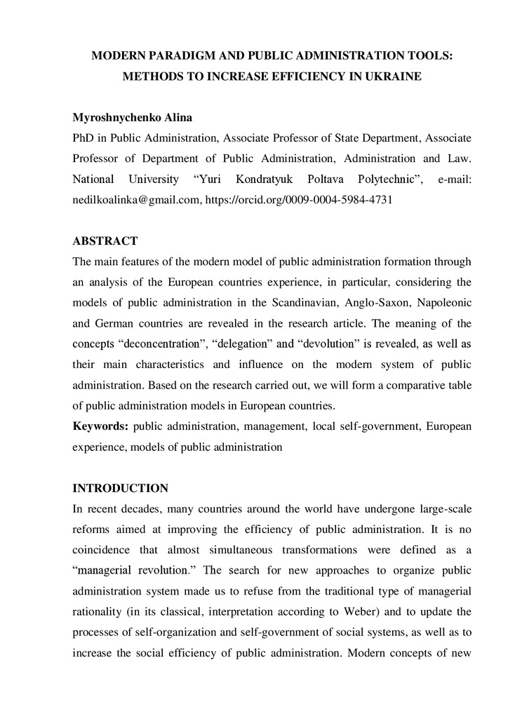 Modern paradigm and public administration tools: methods to increase efficiency in Ukraine