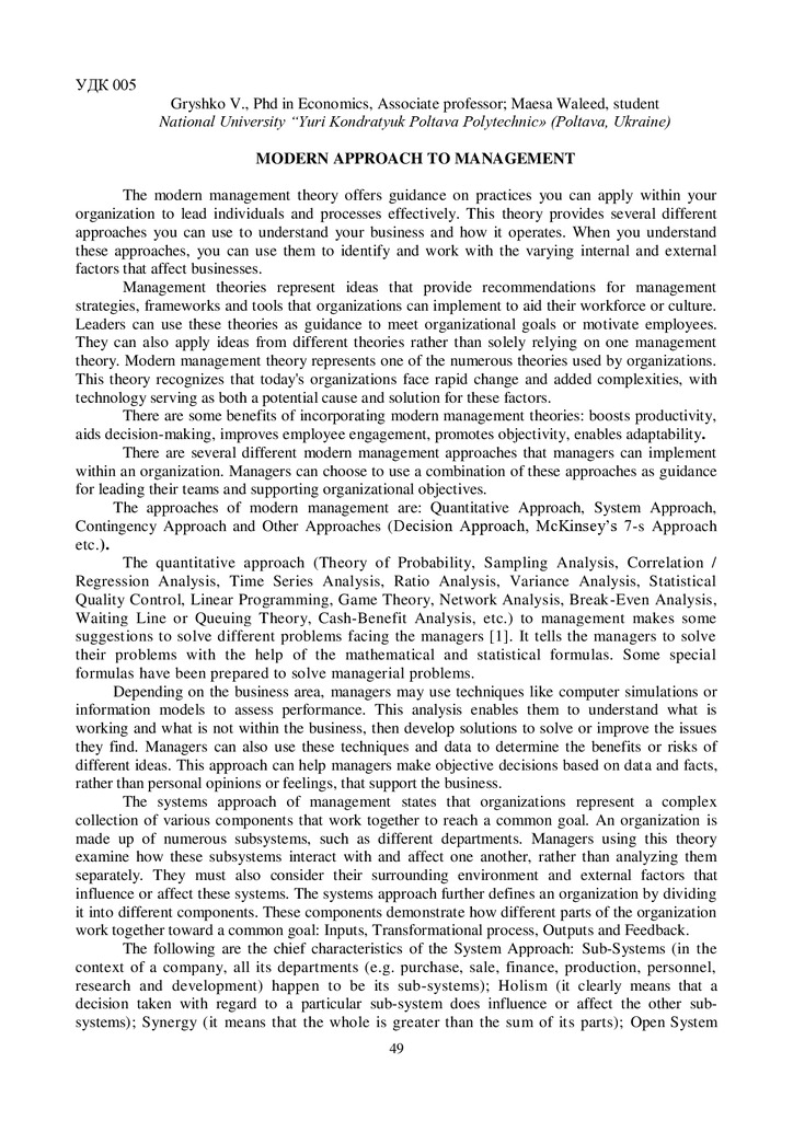 The paper summarizes the essence and role of a systematic approach in enterprise management in a digital economy; modern approaches in management are investigated and the comparative analysis of ef...
