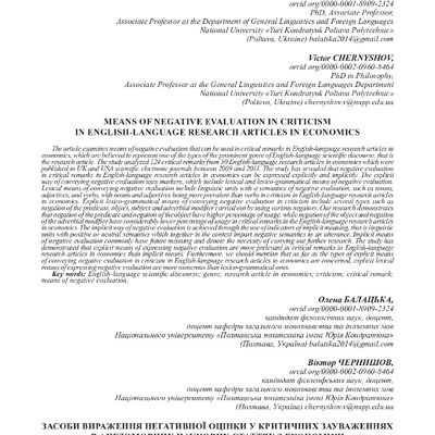 The article studies mean of negative evaluation in critical remarks in English-language research ...