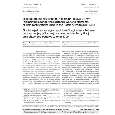 Exploration and restoration of parts of Poltava’s town fortifications during the Northern War and elements of field fortifications used in the Battle of Poltava in 1709