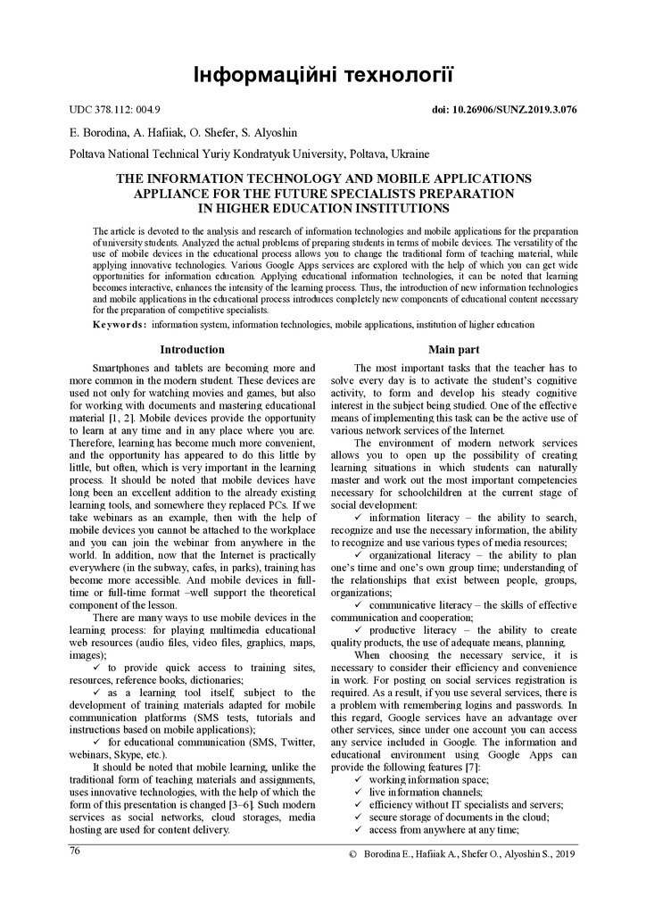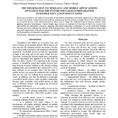 2022/12/20The information technology and mobile applications appliance for the future specialists preparation in higher education institutions