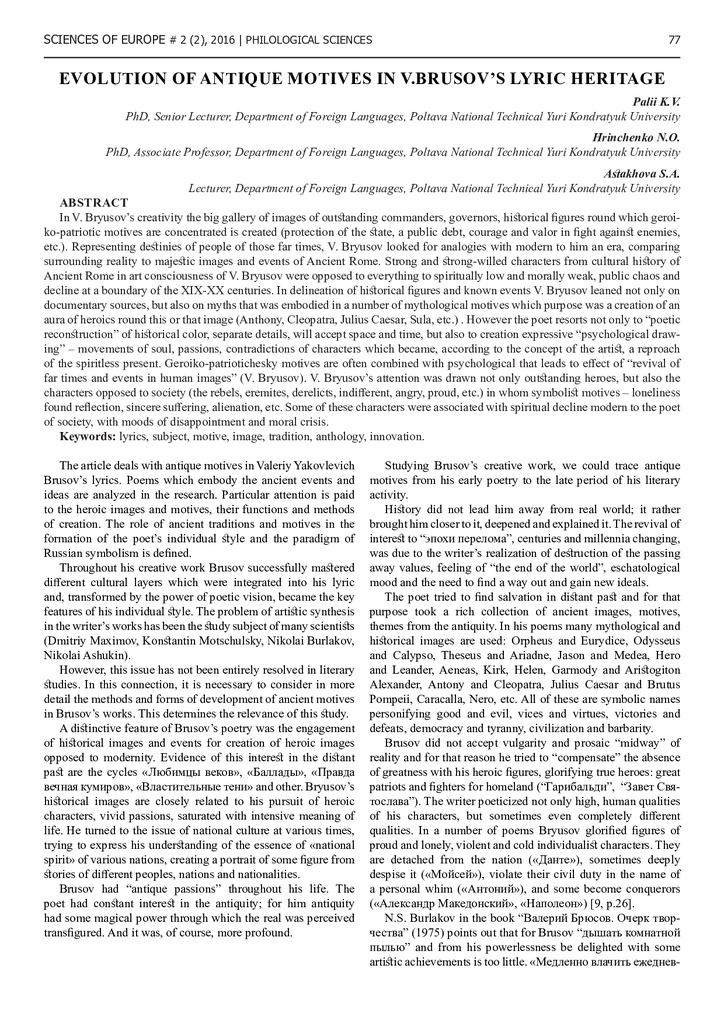 2022/11/25Evolution of motives in V. Brusov’s lyric heritage