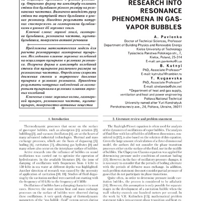 Запропоновано математичну модель для розрахунку резонуючих газопарових бульбашок. Досліджено впли...