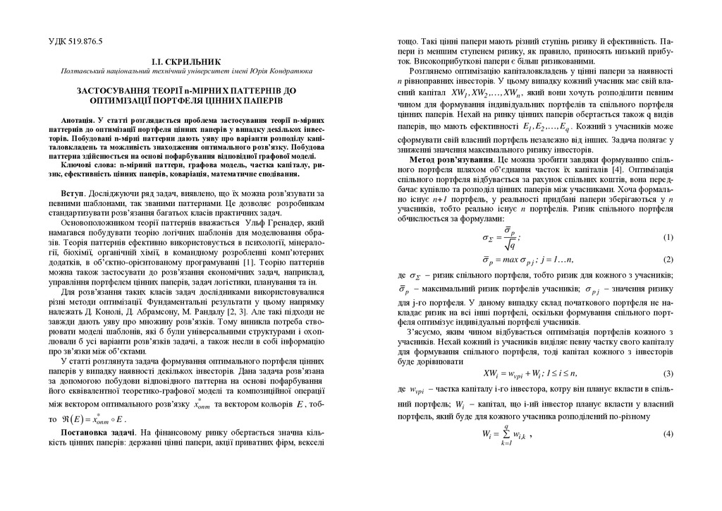 Застосування теорії n-мірних паттернів до оптимізації портфеля цінних паперів
