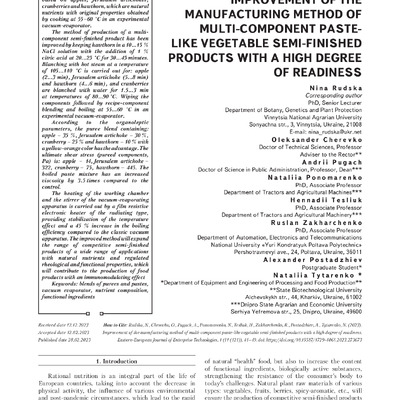 The object of the study is a multi-component past-like semi-finished product based on apples, Jerusalem artichokes, cranberries and hawthorn, which are natural nutrients with original properties ob...
