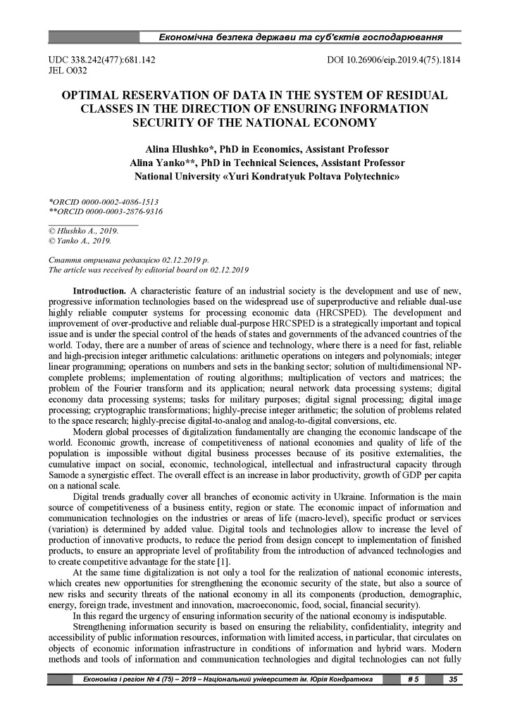 The problem of increasing the level of information security of the national economy is actualized...