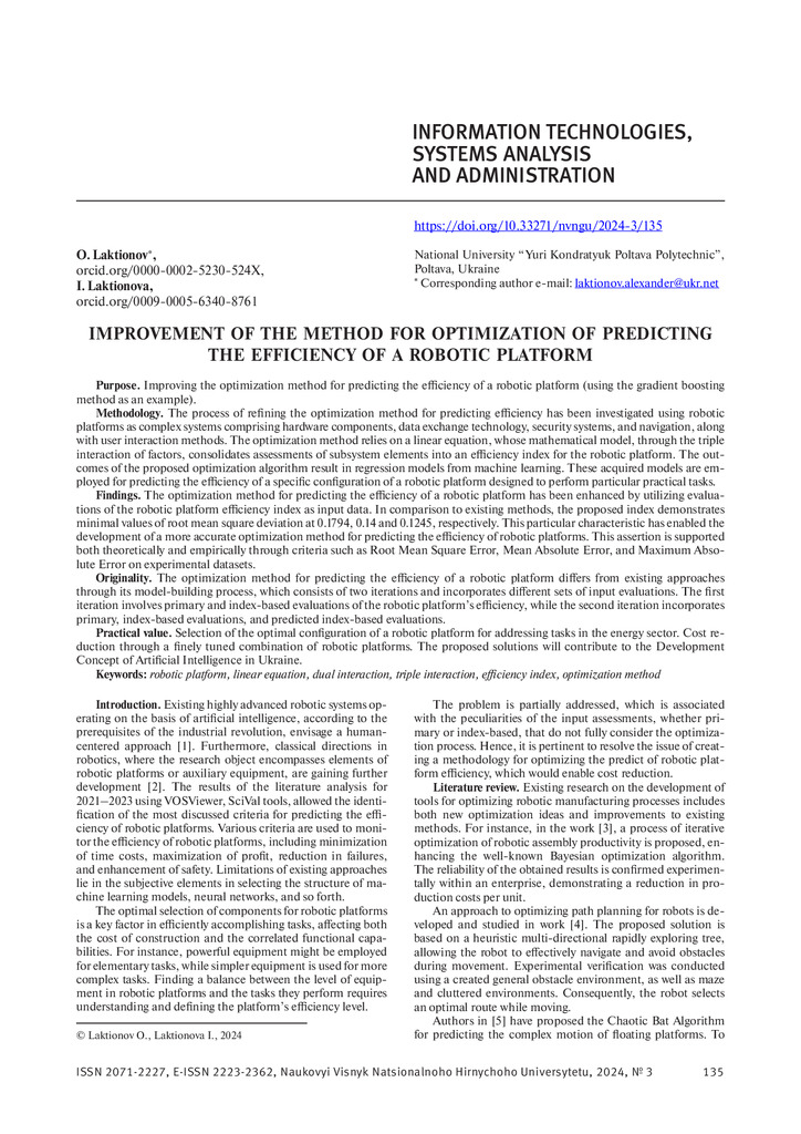 Improving the optimization method for predicting the efficiency of a robotic platform (using the ...