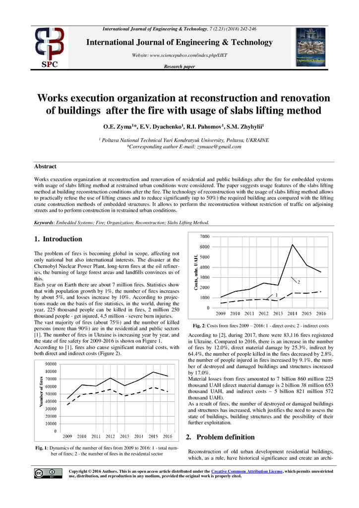 Works execution organization at reconstruction and renovation of residential and public buildings after the fire for embedded systems with usage of slabs lifting method at restrained urban conditio...
