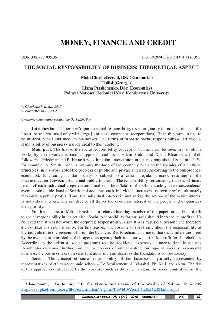 The social responsibility of business: theoretical aspect