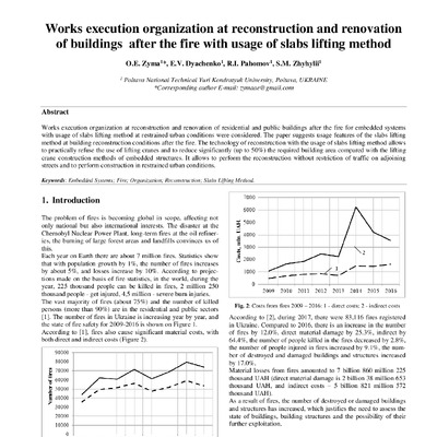 Стаття 2018/10/11Works execution organization at reconstruction and renovation of buildings after the fire with usage of slabs lifting method